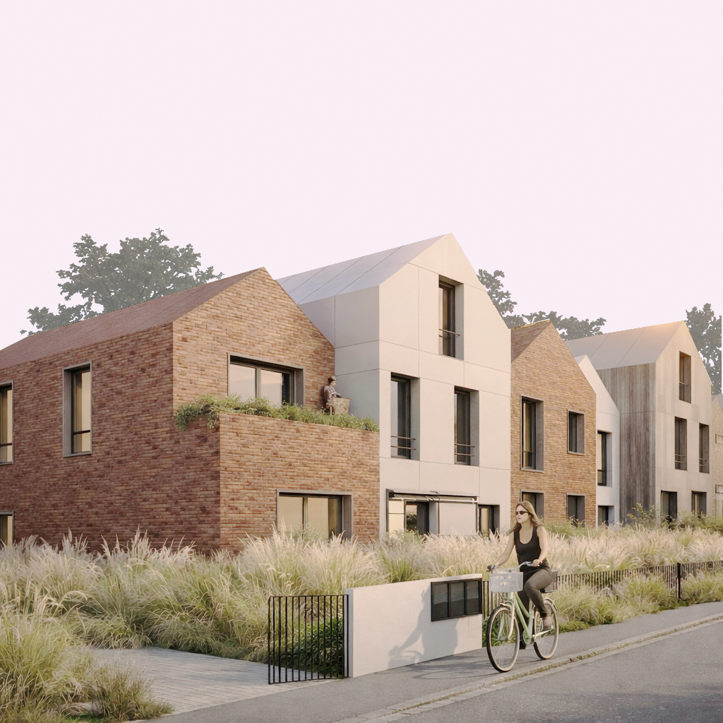 Les parcelles concernées, réparties sur le site, ne sont pas toujours mitoyennes. Les différentes situations permettent la naissance d’un projet global à l’échelle du quartier, en cohérence avec les programmes de chaque secteur. Conscients que la continuité visuelle doit être conservée dans cet ensemble conçu comme un tout, le projet s’attache à conserver une illusion de maison individuelle malgré le regroupement de plusieurs logements dans un même volume bâti. L’enjeu est de créer une architecture qui s’inscrit dans le tissu environnant en offrant un cadre valorisé pour chaque logement.